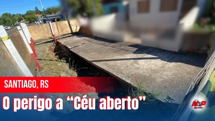 Santiago, RS – Um leitor do NP Expresso entrou em contato para relatar o afundamento de uma boca de lobo na rua Tito Beccon, no bairro Céu Aberto, a apenas quatro quadras do Centro de Santiago (RS). O problema, causado pelas enxurradas, formou uma grande cratera que ocupa a frente de duas casas.