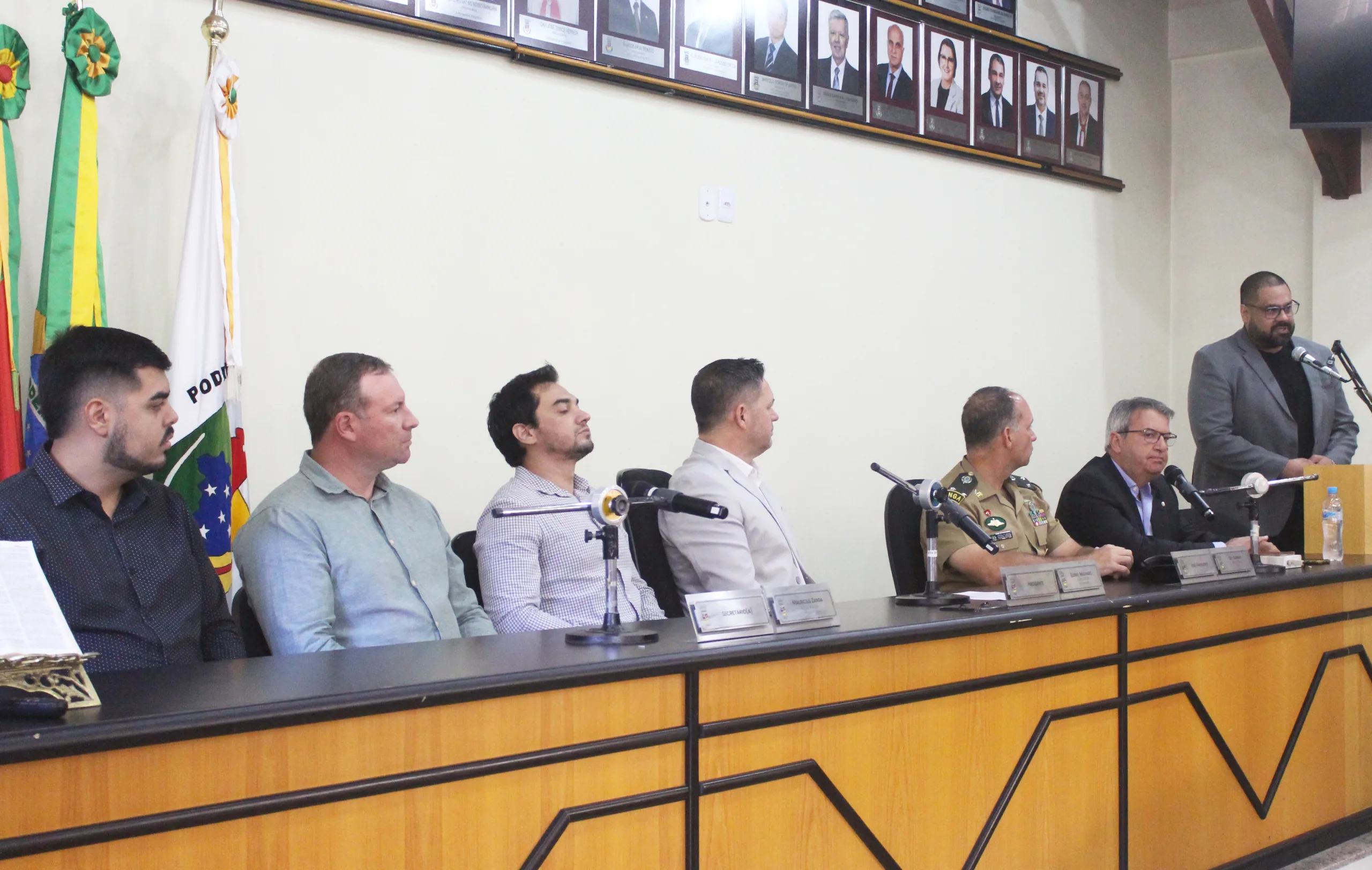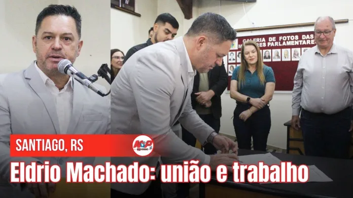 Santiago, RS – Em solenidade na manhã desta segunda (5), o vereador Eldrio Machado, PP, assumiu a presidência da Câmara destacando a importância do trabalho coletivo e o respeito entre os 13 vereadores. Com o plenário lotado, ele reforçou o compromisso de ser o líder do governo do prefeito Piru, a quem elogiou pela honestidade e preparo na gestão.