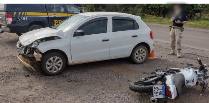 Em vídeo: veja como foi o choque entre carro e moto na 287