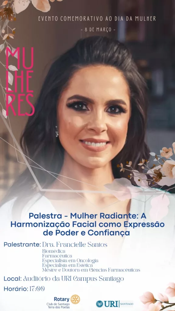 O Rotary Clube Terra dos Poetas, em parceria com a URI Santiago e a Associação Mulher Empreendedora, organiza um evento em homenagem ao Dia Internacional da Mulher. A atividade ocorre neste sábado 8 de março, às 17h, no auditório da URI, com entrada aberta ao público.