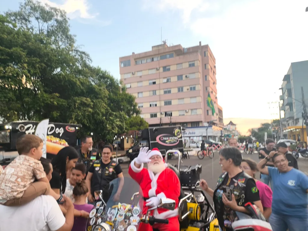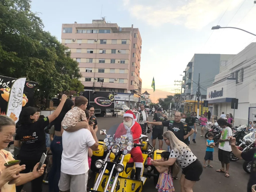 Um dos momentos marcantes foi a chegada do Papai Noel de moto, numa entrada festiva promovida pelo grupo de motociclistas Os Caranchos. A ação integrou a programação oficial do Santiago: Querência do Natal, encantando crianças e adultos e reforçando o espírito coletivo e natalino do evento.