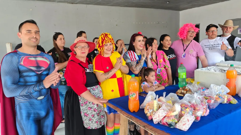 Santiago – RS – O bairro Irmã Dulce vive uma nova fase. Sob a liderança de Nilson Fontela, a comunidade mostrou nesse sábado (11) que união e boa vontade fazem a diferença. A festa das crianças reuniu famílias inteiras, com brinquedos, música e a presença de personagens que encantaram os pequenos.