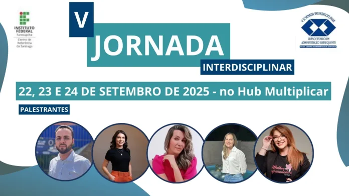 Santiago, RS – O Instituto Federal Farroupilha – Centro de Referência de Santiago realiza, nos dias 22, 23 e 24 de setembro, a V Jornada Interdisciplinar do Curso Técnico em Administração Subsequente. O evento acontece sempre às 19h30, no Hub Multiplicar, e reunirá convidados especiais para debater temas atuais e de grande relevância.