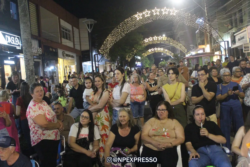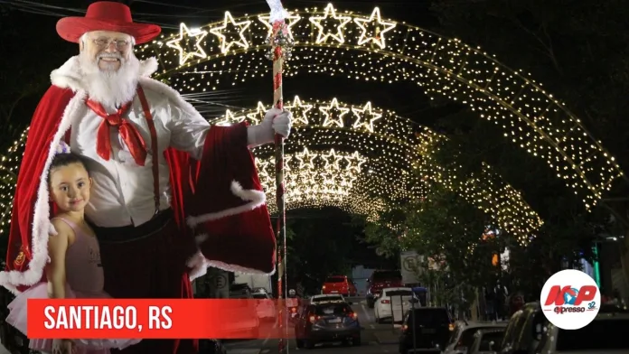 Santiago deu continuidade à programação “Santiago, a Querência do Natal” nesta quarta (3/12) com um evento especial no Calçadão, que contou com a inauguração oficial dos arcos de iluminação instalados nas suas duas quadras.