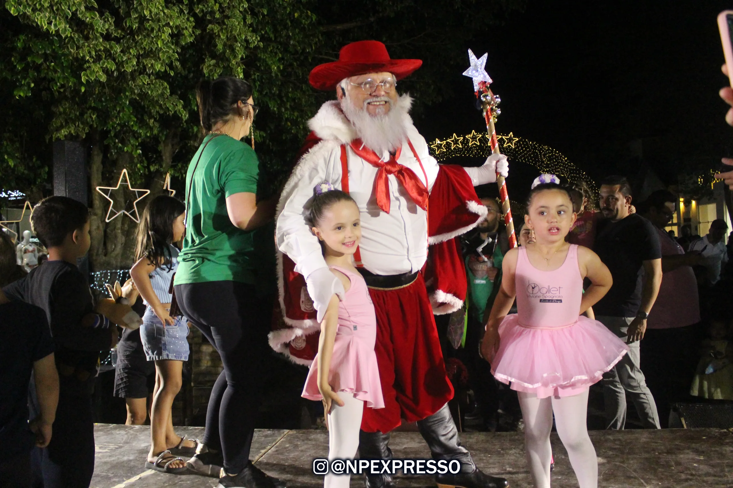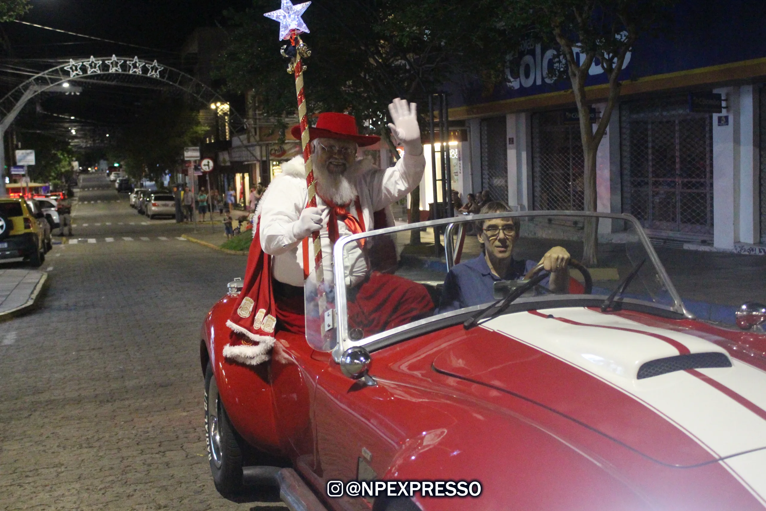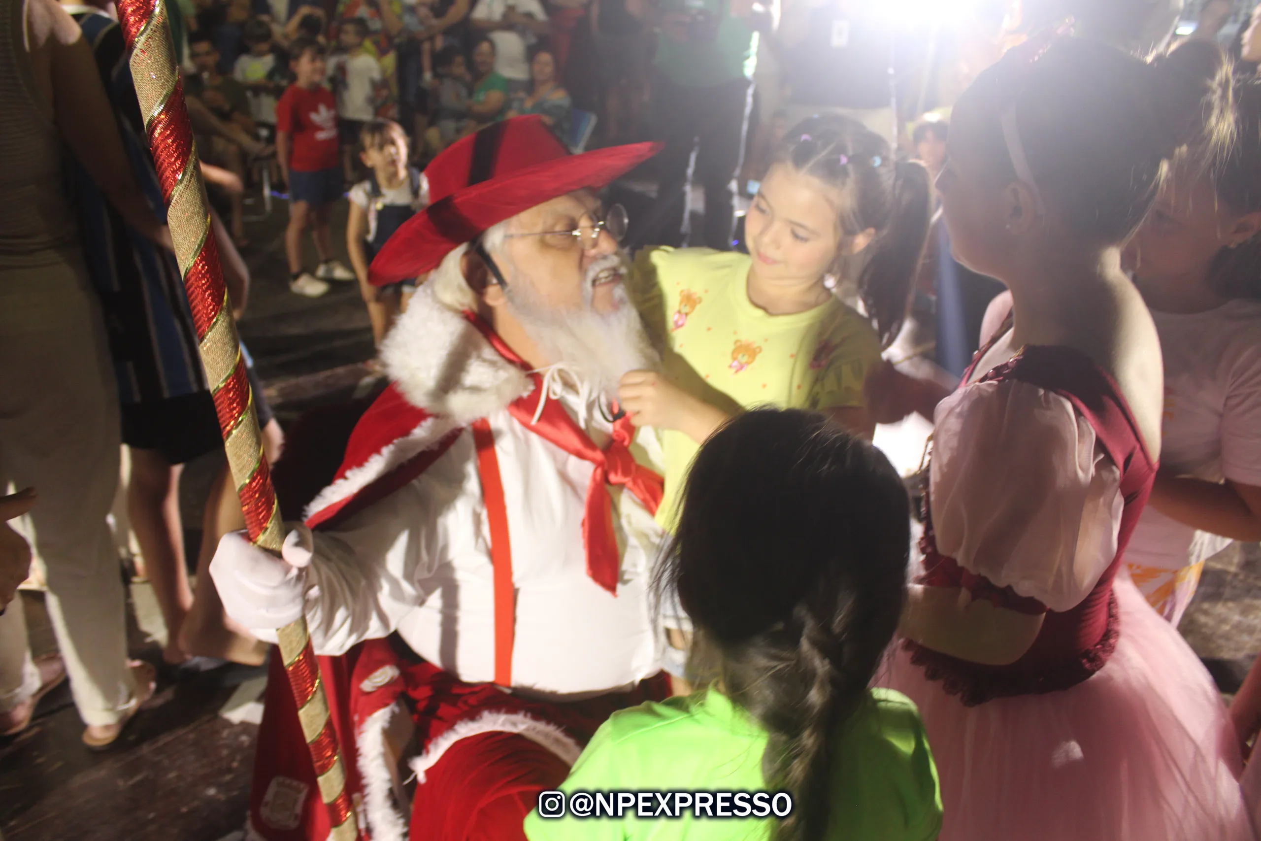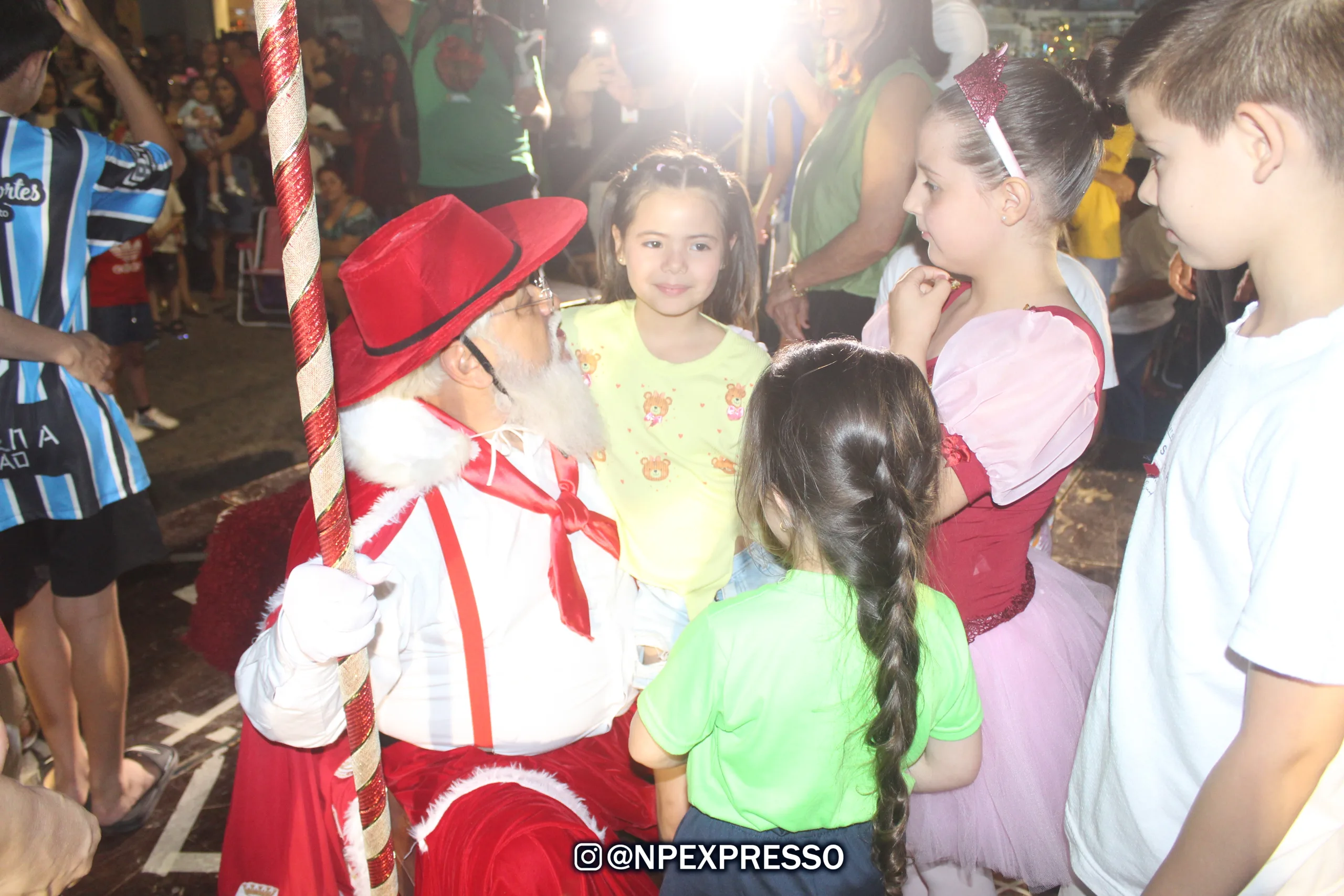 A festa natalina também beneficiou o comércio local, já que parte das lojas do centro estendeu seu horário de funcionamento, permanecendo abertas até as 20h. O momento mais esperado da noite foi a tradicional chegada do Papai Noel.