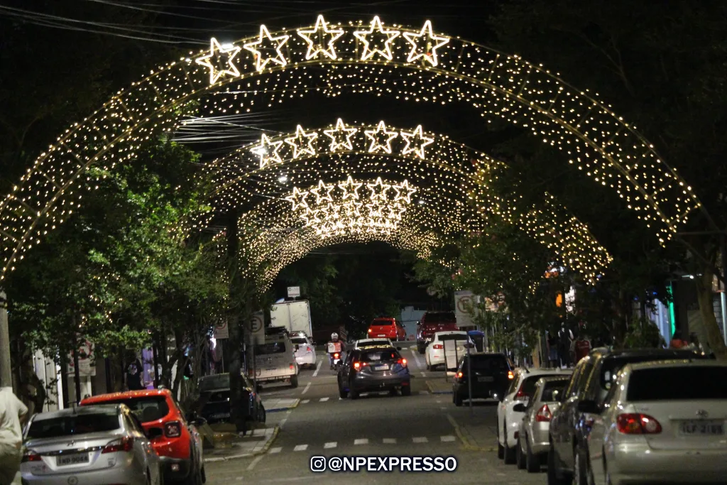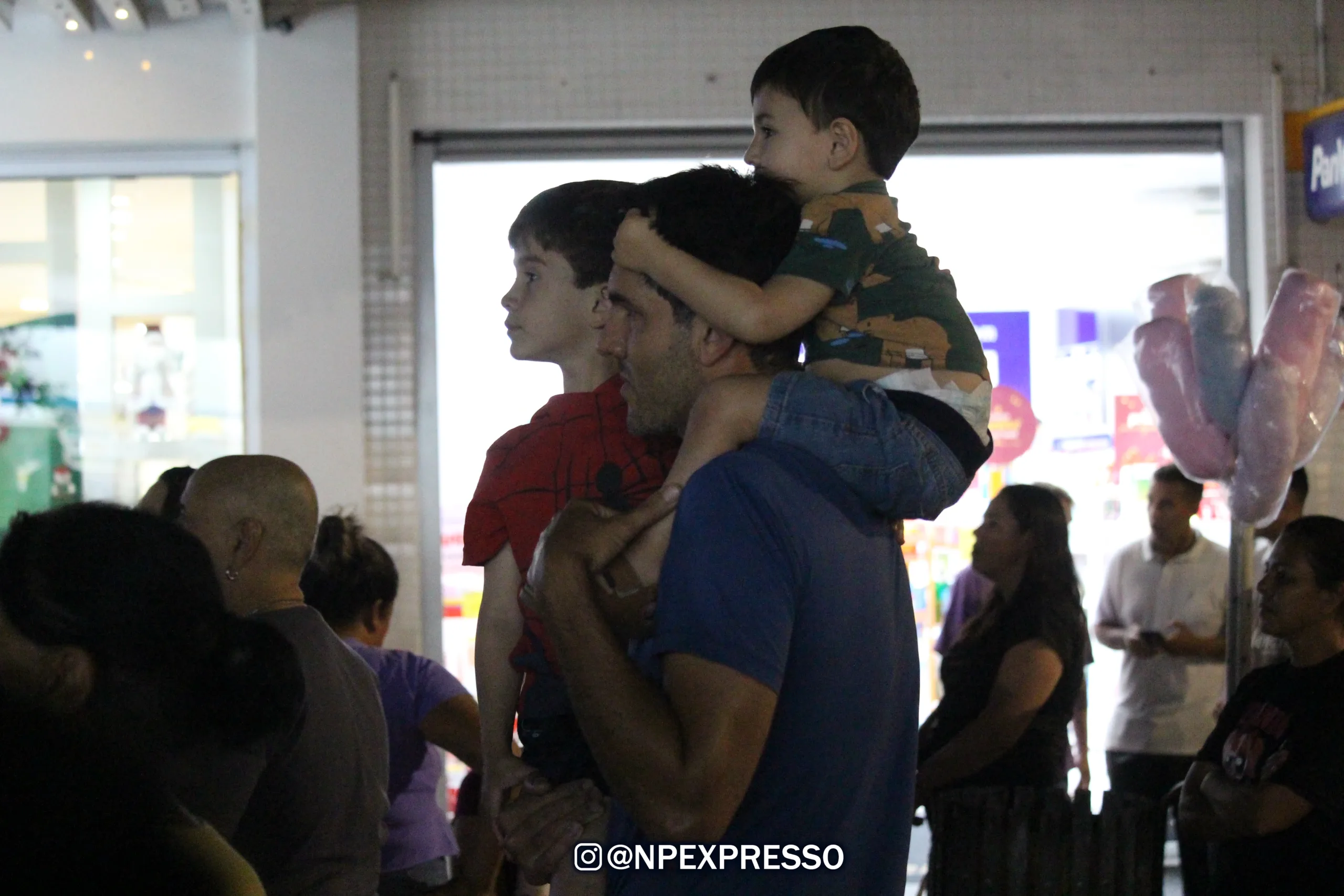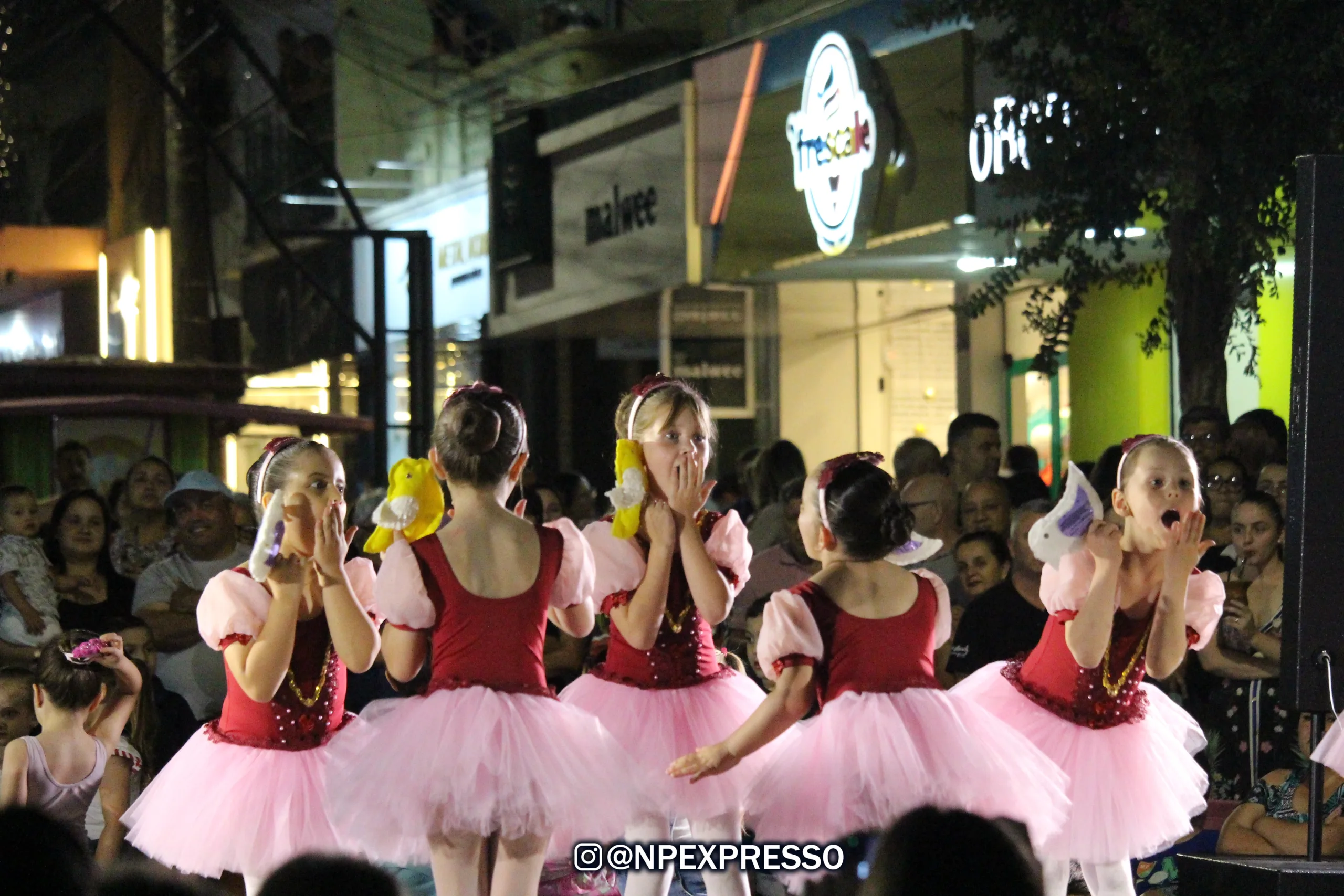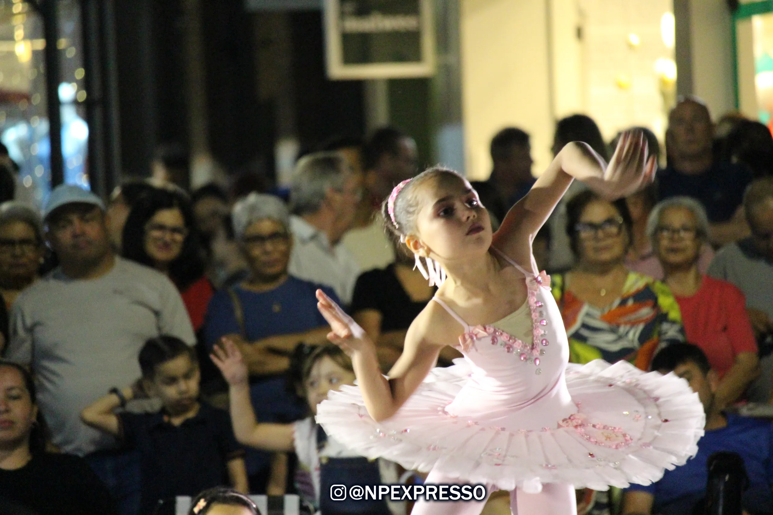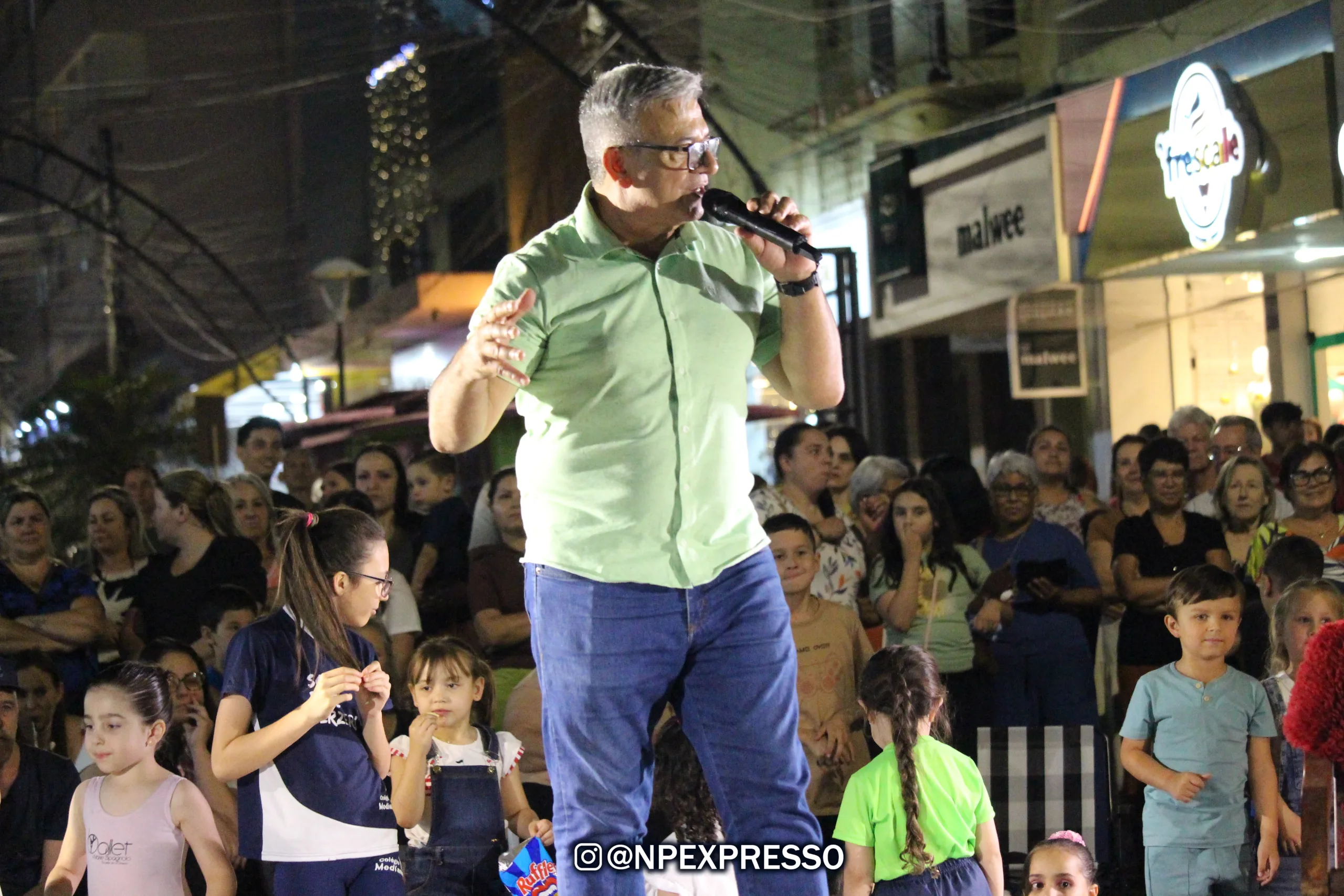 A festa natalina também beneficiou o comércio local, já que parte das lojas do centro estendeu seu horário de funcionamento, permanecendo abertas até as 20h. O momento mais esperado da noite foi a tradicional chegada do Papai Noel.