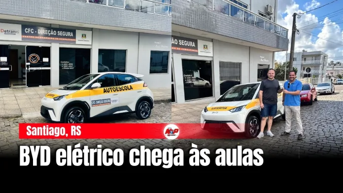 Nicola BYD entrega carro elétrico para autoescola de Santiago