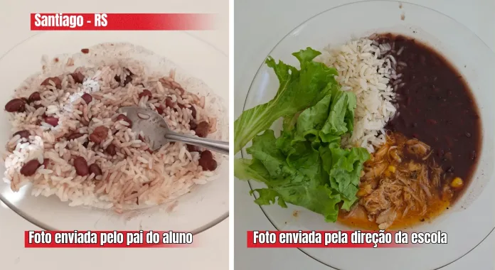 Santiago – RS – Um pai de aluno da escola Apolinário Porto Alegre procurou a redação após fazer foto da refeição servida, ele questiona o valor nutricional. Disse que, no entendimento dele, a comida não estaria adequada e levantou dúvida sobre o uso dos recursos.