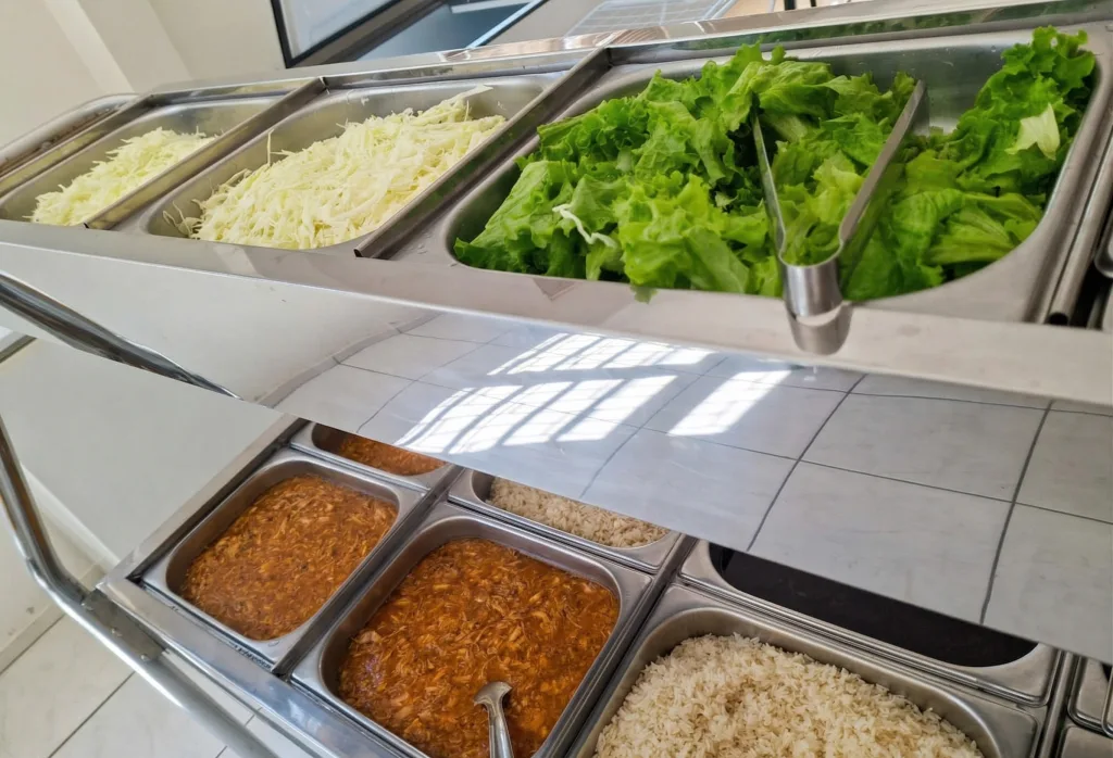 Segundo a diretora Gelba dos Santos Rosa, alimentação é variada durante a semana, com ajustes conforme a aceitação dos alunos. Entre os itens estão arroz, feijão, carne, frango, saladas, macarrão, pão, leite, frutas e sucos, servidos de forma alternada.