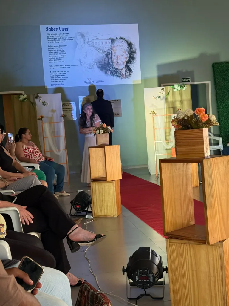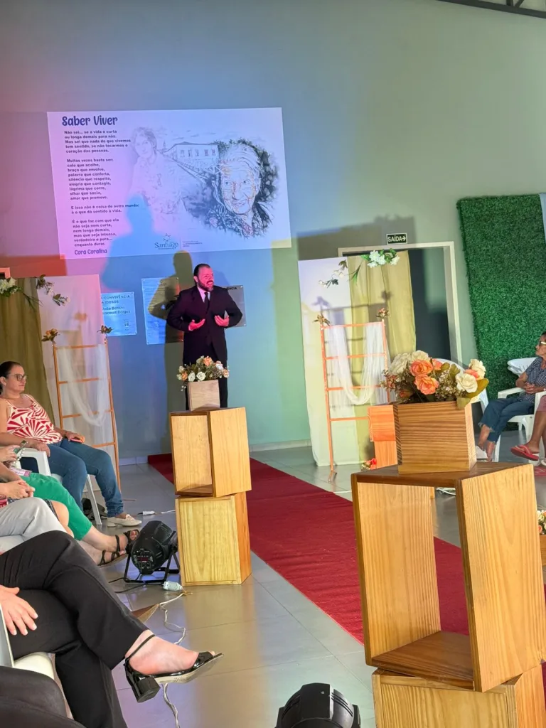 Santiago, RS – No fim da tarde deste 2 de dezembro, o Centro de Convivência do Idoso recebeu a apresentação da peça “Marias”, do Grupo Dom de Semblantes, em um encontro que uniu arte, sensibilidade e reflexão. O espetáculo integrou oficialmente as programações do Natal de Santiago – A Querência do Natal e a campanha dos 21 Dias de Ativismo pelo Fim da Violência contra a Mulher, reforçando o compromisso do município com a promoção da conscientização e da proteção às mulheres.