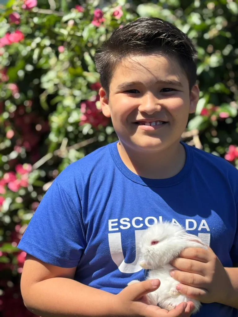 A experiência, que se insere de forma direta nas propostas do projeto educativo da turma, reforça valores essenciais como o cuidado, a responsabilidade e o respeito pela vida. Entre momentos de encantamento e descobertas, um dos alunos partilhou entusiasmado: “Profe Taci, essa foi a primeira vez que eu vi pessoalmente coelhos, pavão e porquinho-da-Índia.”