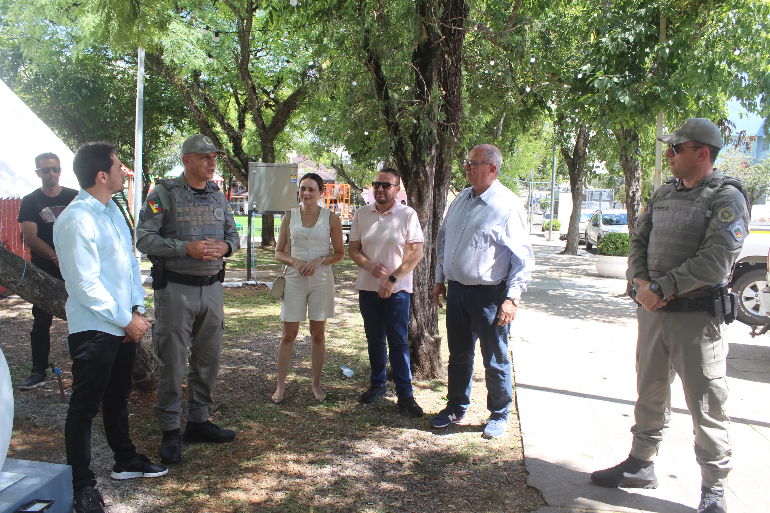 Presenças – O lançamento da operação ocorreu na pracinha de brinquedos. Entre as autoridades presentes, estavam o comandante regional da Brigada, coronel Cilon, o comandante do 5º RPMon, major Copetti, o prefeito Marcelo Piru, o presidente do Centro Empresarial, Alex Fank Peixoto, a vice Carla Oliveira, o presidente da Câmara, Haroldo Poey, secretário Márcio Brasil (Turismo e Cultura), além da imprensa e policiais.