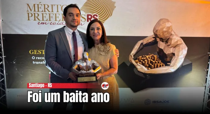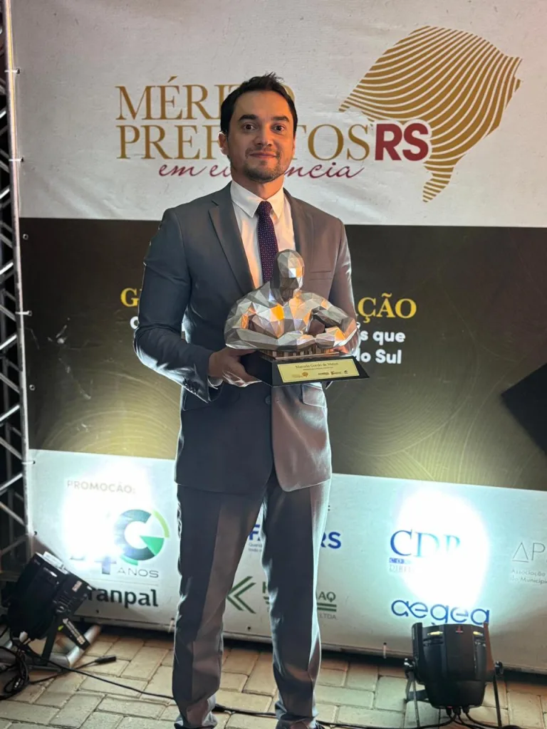 Santiago – RS (Região Central) – O prefeito Marcelo Gorski, o Piru, encerra o ano com mais um troféu na estante. Ele participou do evento de 40 anos da Granpal (Consórcio dos Municípios da Região Metropolitana) e recebeu o “Prêmio Mérito Prefeitos RS”. O chefe do executivo se firma como um dos administradores mais premiados da história da cidade.