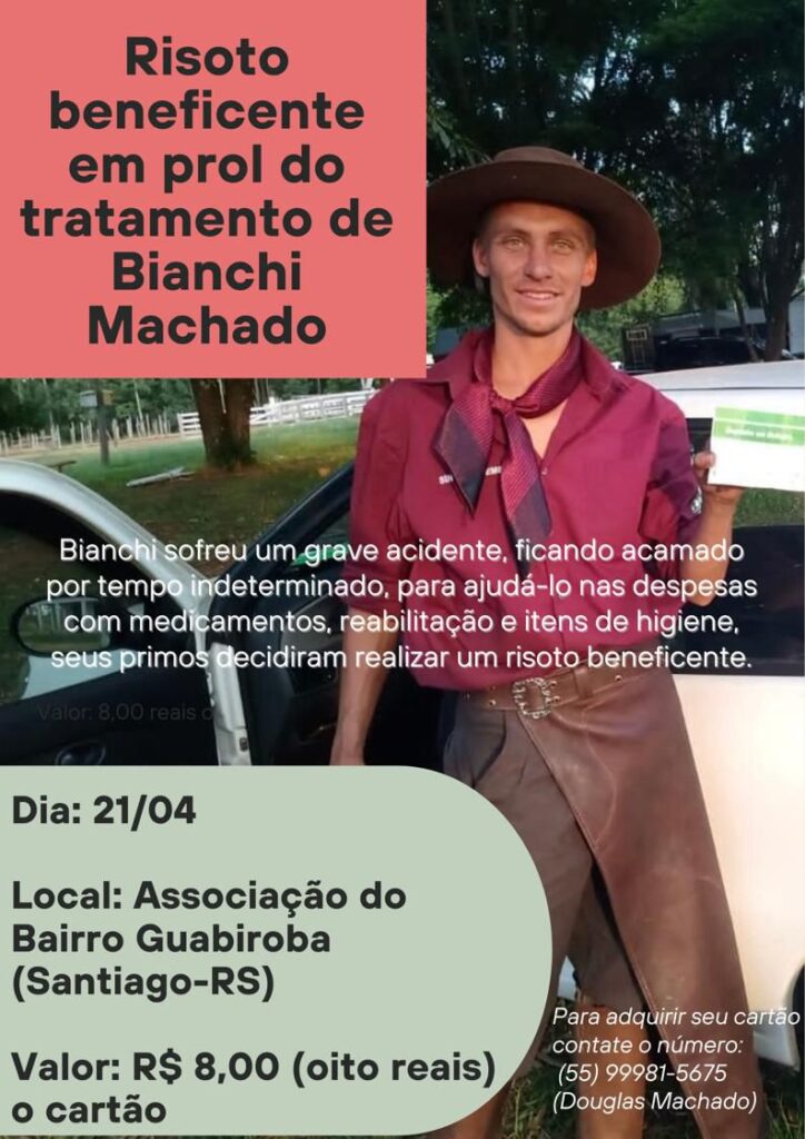 O santiaguense Bianchi Machado (28 anos) deixou o Hospital Regional de Santa Maria após 40 dias. Ele ficou gravemente ferido em um acidente de carro ocorrido na noite de 11 de fevereiro, na BR 290, em São Sepé. A irmã, Ana Carolina Corrêa Machado (14 anos), faleceu no acidente. Eles viajavam com o pai, Paulo Augusto de Lourenço Machado.