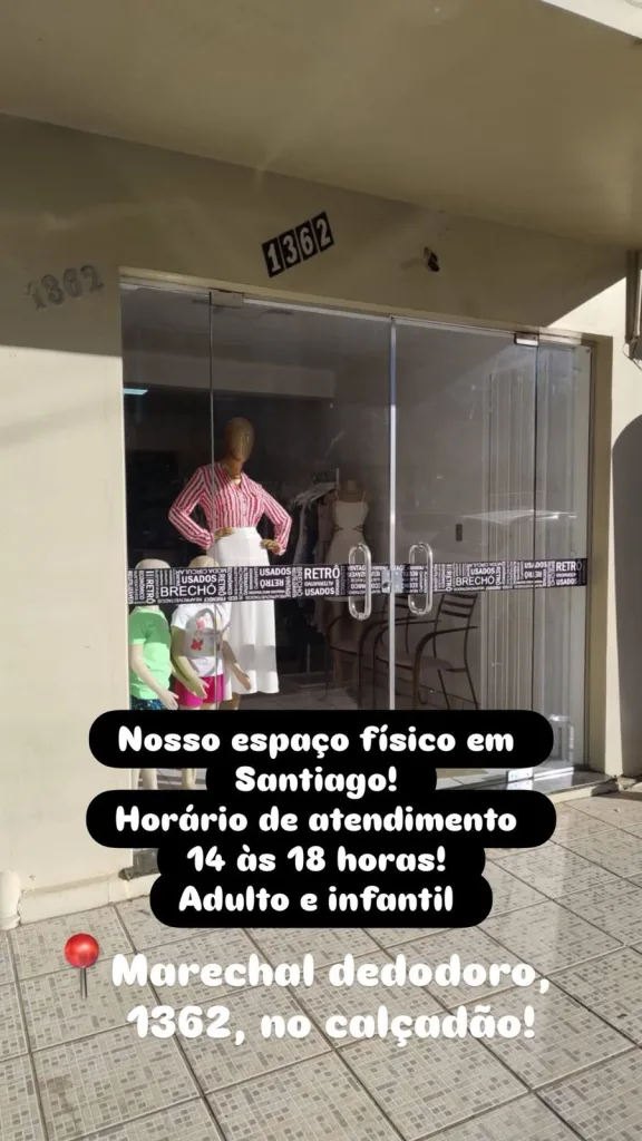 O espaço físico do brechó está localizado na Rua Marechal Deodoro, nº 1362, bem no centro de Santiago, com fácil acesso para quem deseja conferir as novidades pessoalmente. O brechó funciona de segunda a sábado, das 14h às 18h. Para mais informações, o contato é pelo WhatsApp (55) 9705-5369.