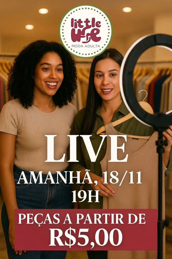 Todas as terças-feiras, às 19h, nos perfis do Instagram @littleusebrecho – infantil e littleuseadulto (Santiago) realiza lives ao vivo, alternando entre peças adultas e infantis, perfeitas para quem adora uma boa oportunidade sem sair de casa. Em outros dias, outras da rede realizam as suas lives.